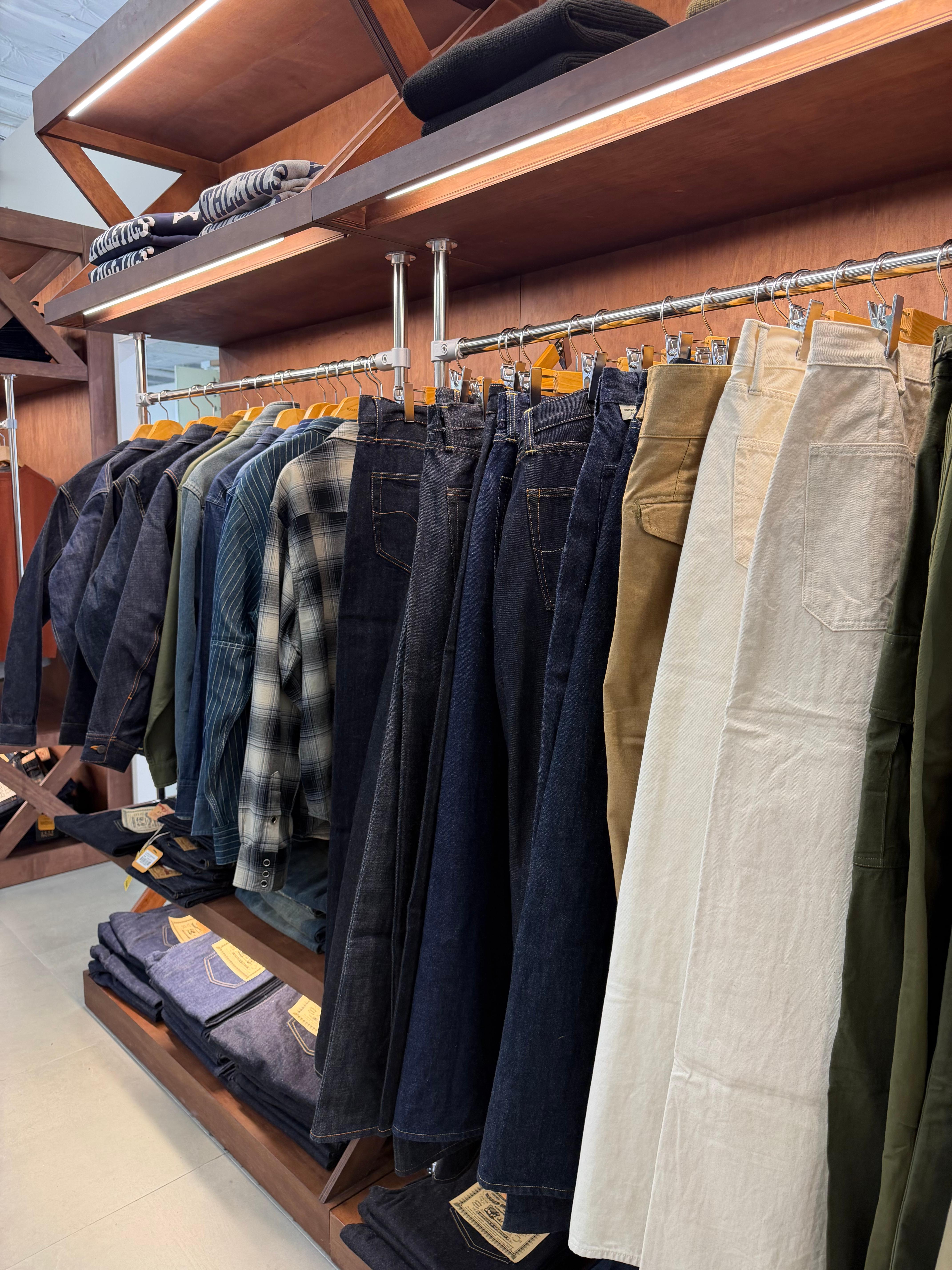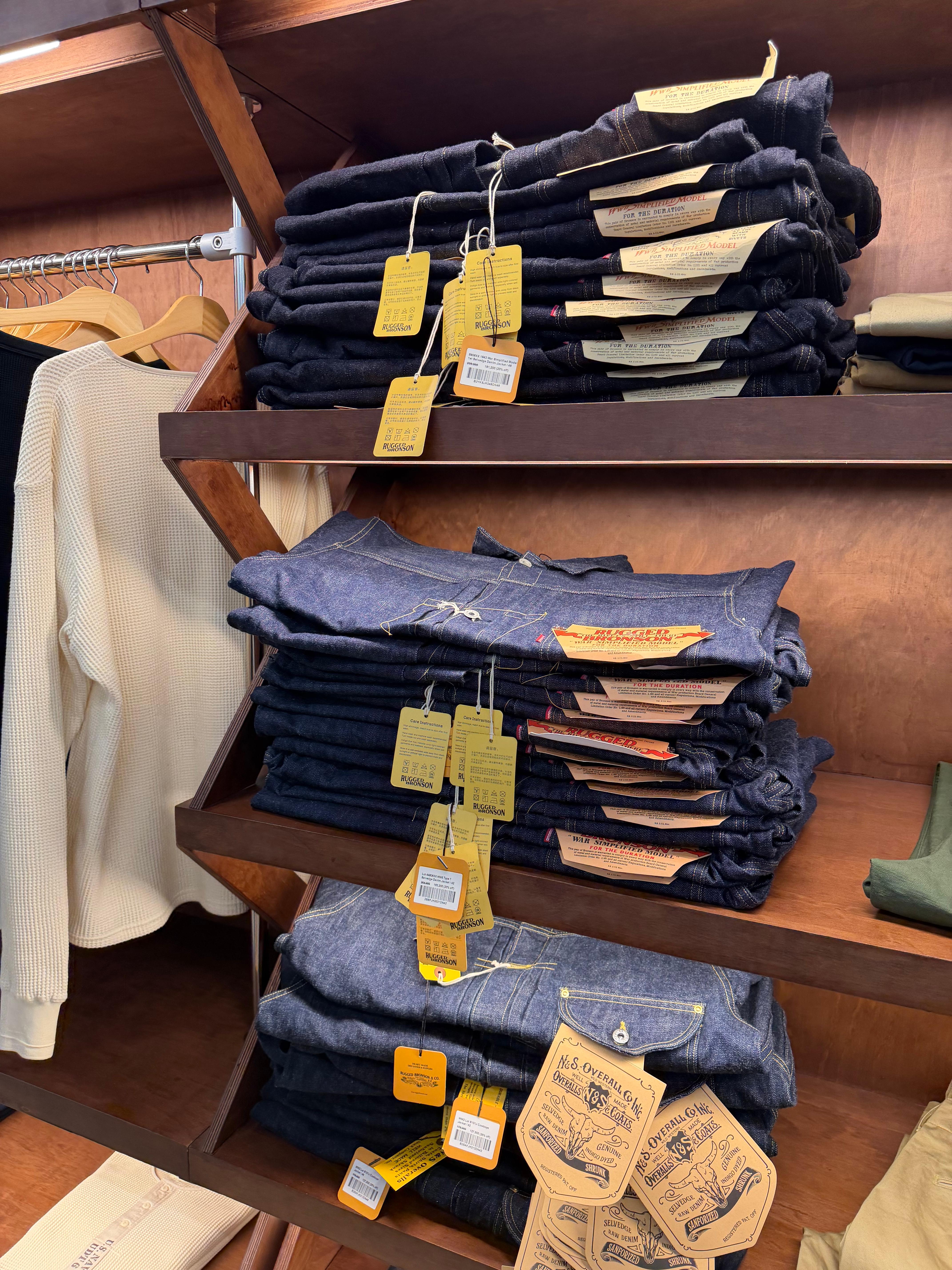팝업 현장에서 많은 분들이 줄을 서서 입어보던 아이템은 단연 데님이었습니다. 리얼맥코이나 프리휠러스 데님은 사실 빨기도 부담스럽고 뭔가 고이 모셔야 할 것 같은 느낌이 든다면, 브론슨의 데님은 거친 작업이나 일상생활에서 편하게 에이징을 즐기기에 최적화되어 있다는 느낌을 받았습니다. 남편은 사실 고가의 브랜드라고해서 엄청 관리를 잘 하는 스타일은 아니지만, 혹여나 빨았다가 줄어들까 물이 너무 빠질까 괜히 제가 좀 마음 졸였었거든요. 근데 이 제품은 전혀 그런 부담감 없이 막 세탁기 돌릴 수 있을 것 같아서 슬쩍 추천했는데, 데님은 이미 너무 많은지라 구경만 했습니다. 그런데 정말 많은 분들이 데님을 입어보고 구매해 가시더라구요. 여러분들도 한 번 방문하셔서 사이즈 체크 해보시면 어떨까 합니다.
