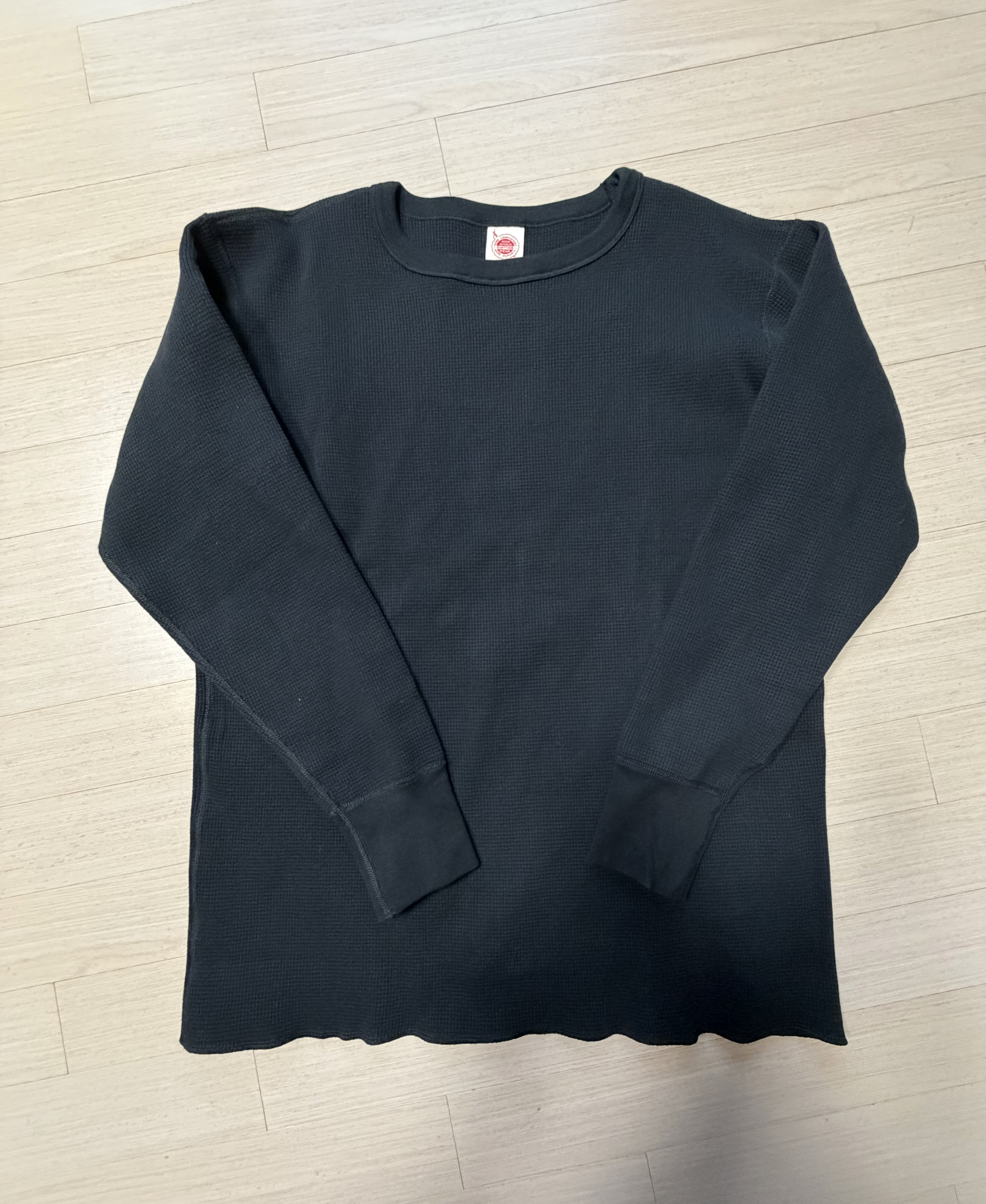 와플 티셔츠는 두툼한 두께감 덕분에 단품으로 입어도 민망하지 않았는데요, 다만 밑단이 완벽히 마감된 것이 아니라 박음질이 남아있는 형태로 되어있어서 넣어입어야만 합니다. 제가 잘 몰라서 그렇지만 이것도 완벽히 복각을 하기위함이 아닐까 생각합니다. 빼입으면 살짝 잠옷입은 것처럼 후들후들해요...