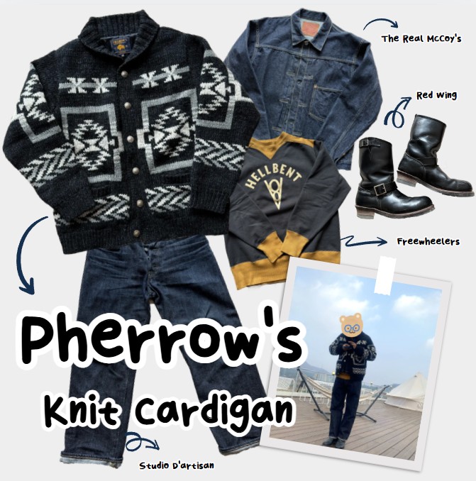오늘 소개해 드릴 아이템은 일본 아메카지의 정점으로 불리는 브랜드, 페로우즈(Pherrow's)의 코위찬 니트 가디건 입니다.